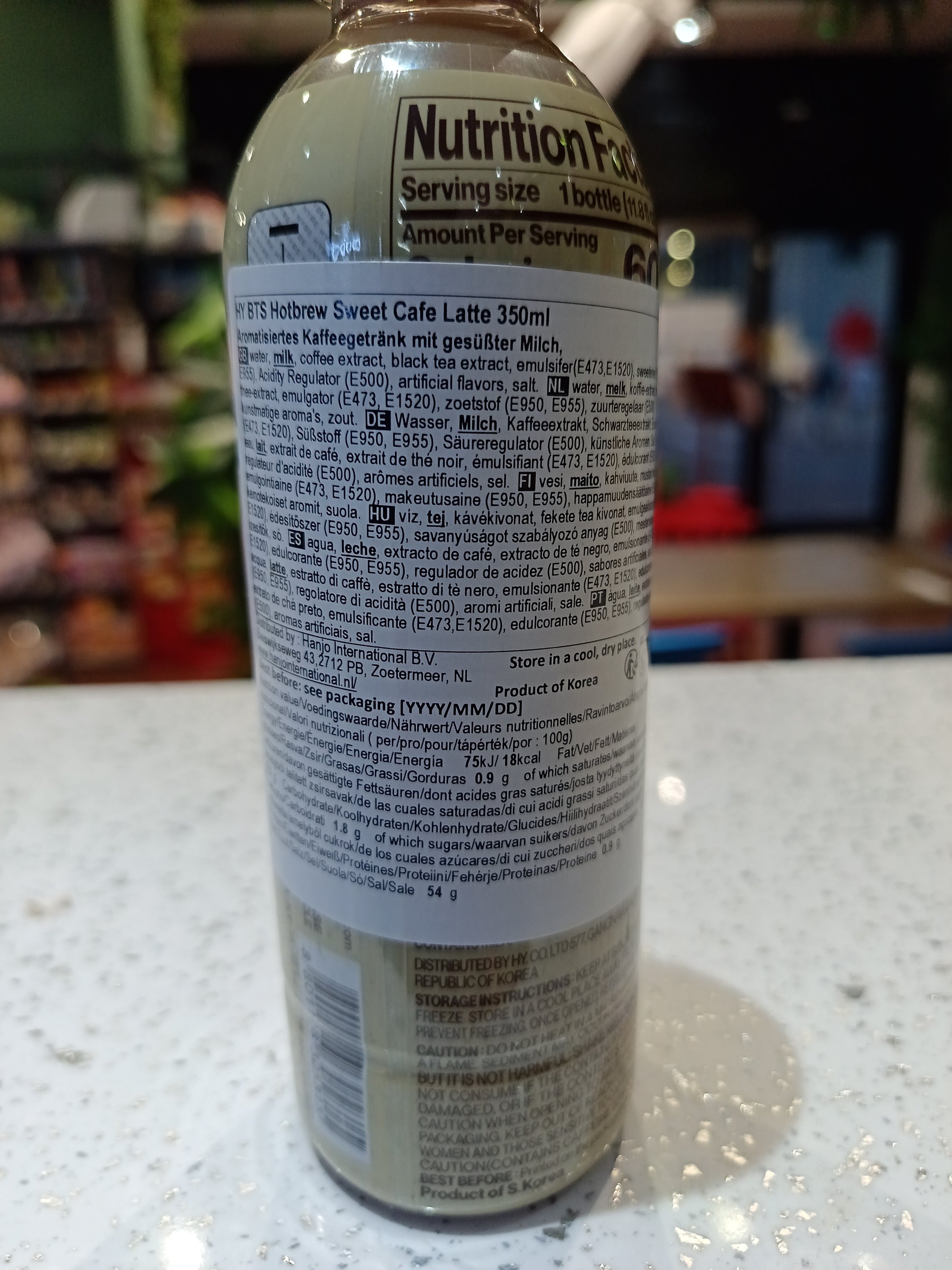 Assapora la dolcezza del BTS Caffè e Latte HY, la bevanda coreana al caffè e latte dolce ispirata al celebre gruppo K-pop!