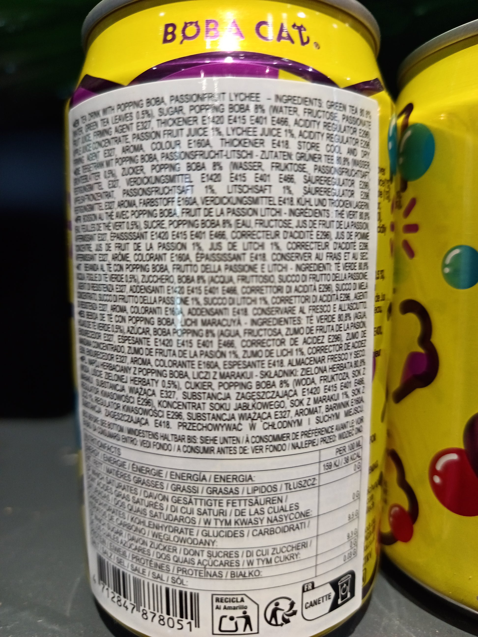 Boba Cat - Boba Tea al passion fruit e litchi 315ml
