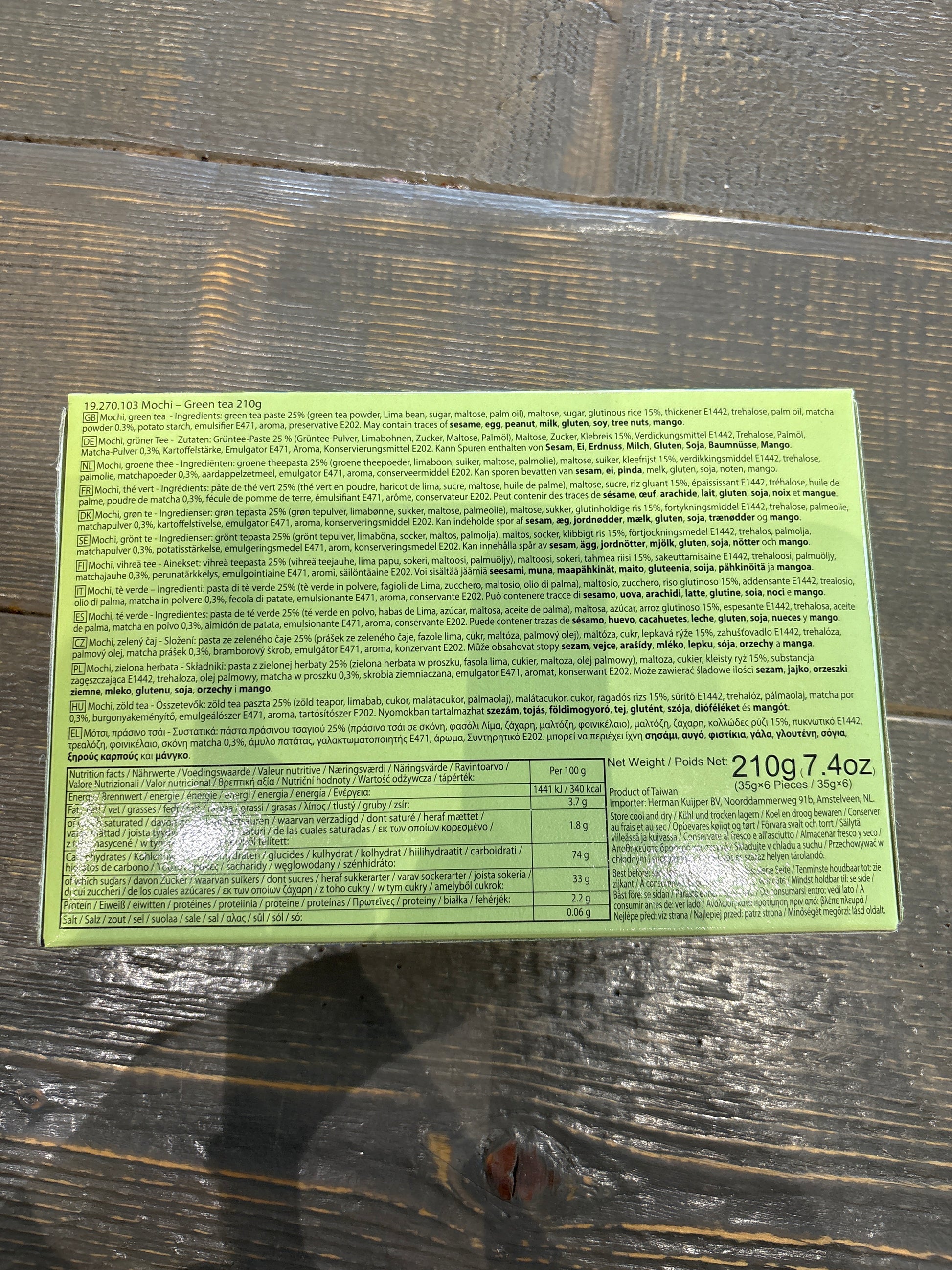 I Mochi Qdianzi al tè verde combinano la morbidezza dell’impasto di riso con un ripieno cremoso al matcha, dal gusto delicato e leggermente amaro. Perfetti da gustare freddi o a temperatura ambiente per un’autentica esperienza giapponese.