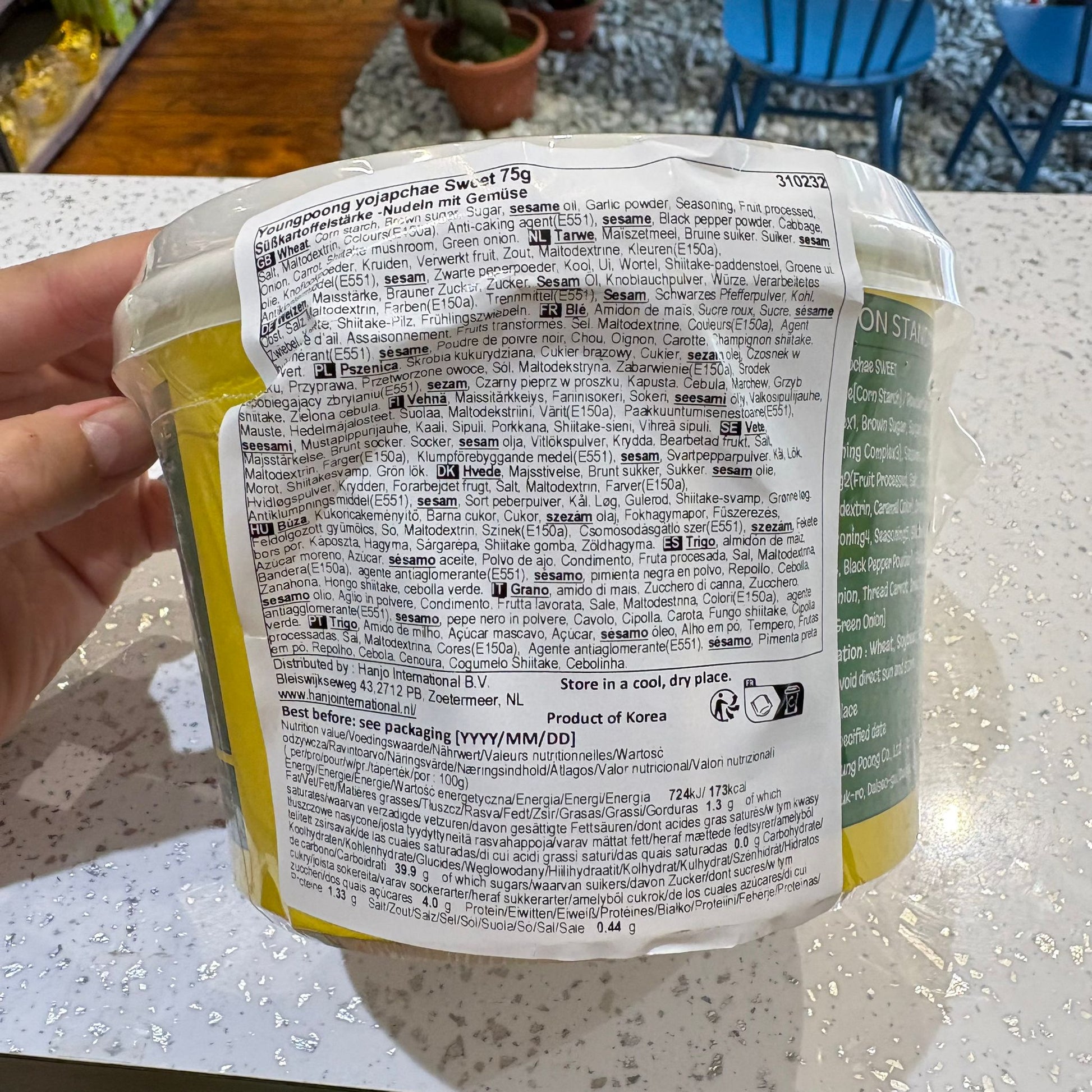 Gli Yopokki Sweet Japchae combinano i tradizionali noodles di patata dolce (glass noodles) con verdure croccanti e una salsa dolce-soia dal gusto equilibrato e autentico.