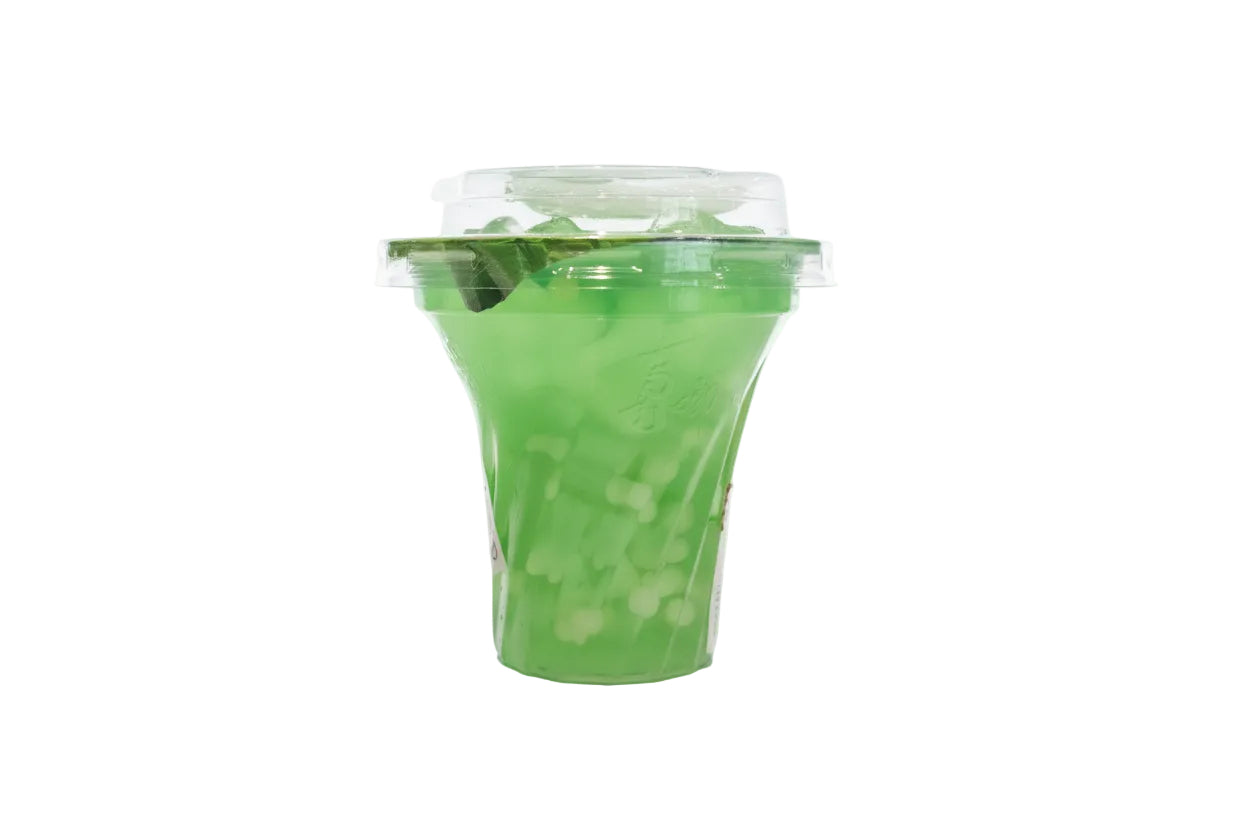 La gelatina Xzl alla mela contiene morbidi pezzi di jelly che possono essere aspirati con l’apposita cannuccia, offrendo una consistenza unica tra bevanda e dessert.