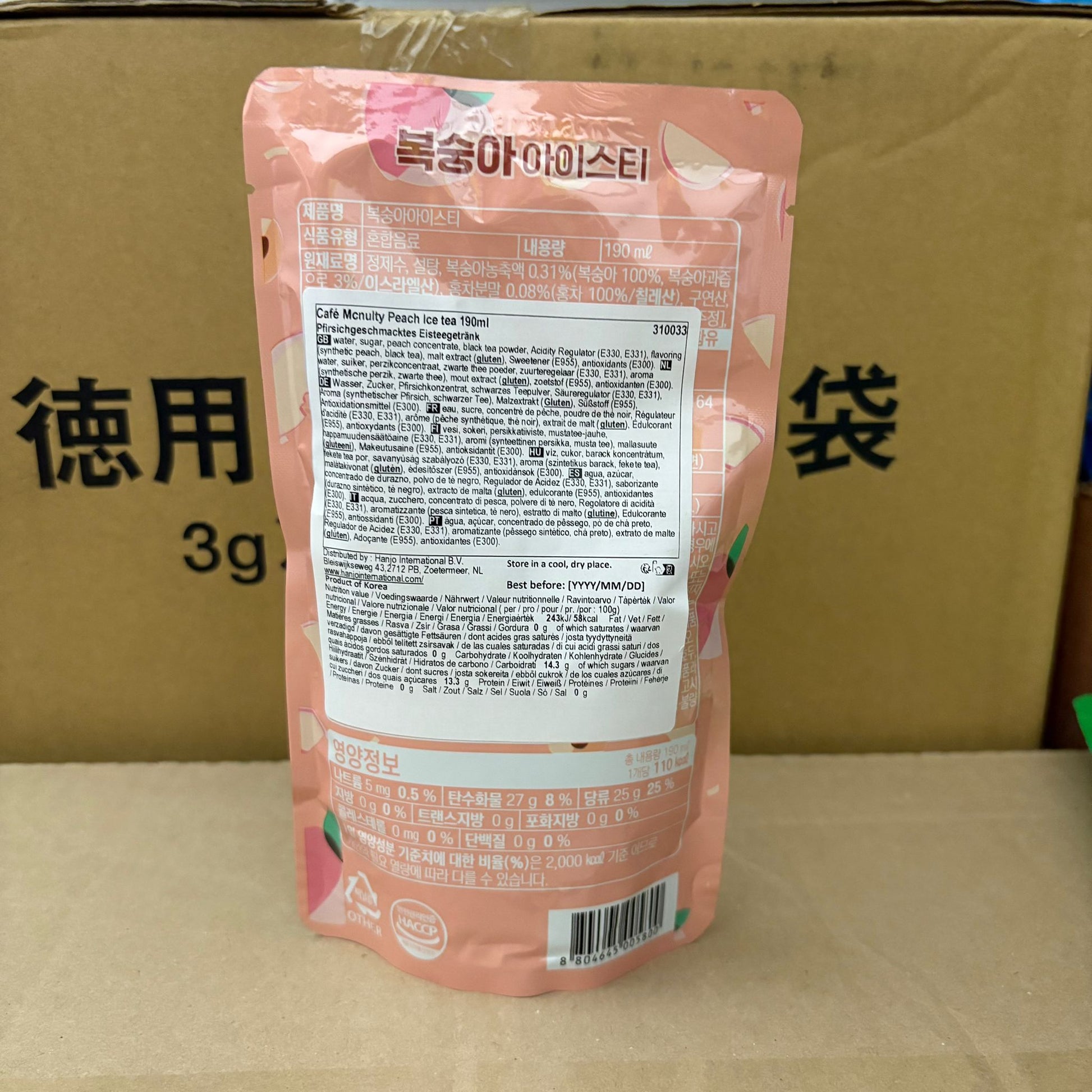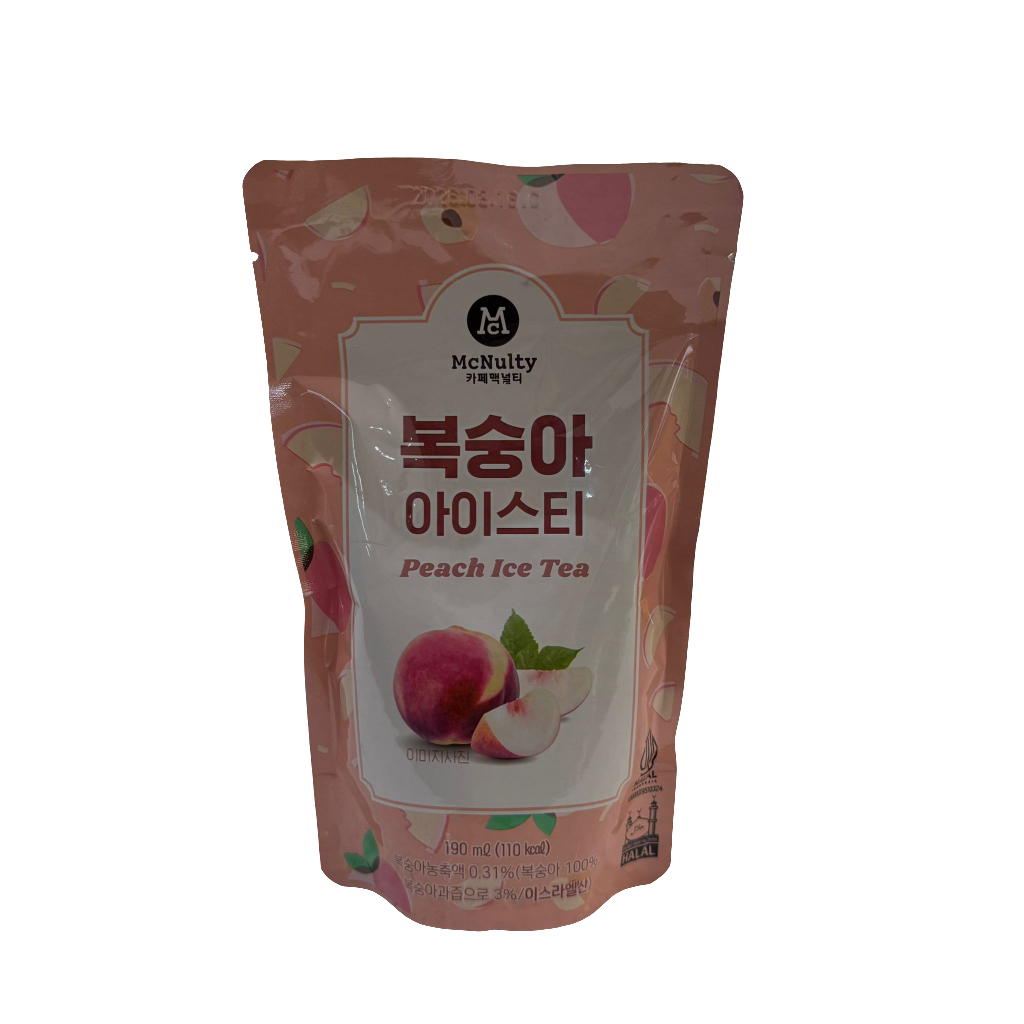 Dolce, fruttato e rinfrescante! Il McNulty Peach Ice Tea è un delizioso tè freddo coreano alla pesca, perfetto per una pausa leggera e gustosa.