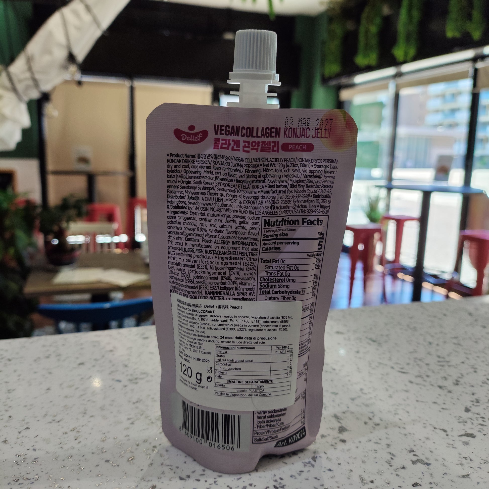 La Konjac Jelly al Collagene Vegano gusto Pesca di Delief è lo snack ideale per chi desidera un tocco di dolcezza naturale e benessere. A base di konjac e collagene vegetale, contiene solo 7 kcal ed è perfetta per uno spuntino sano e delizioso.