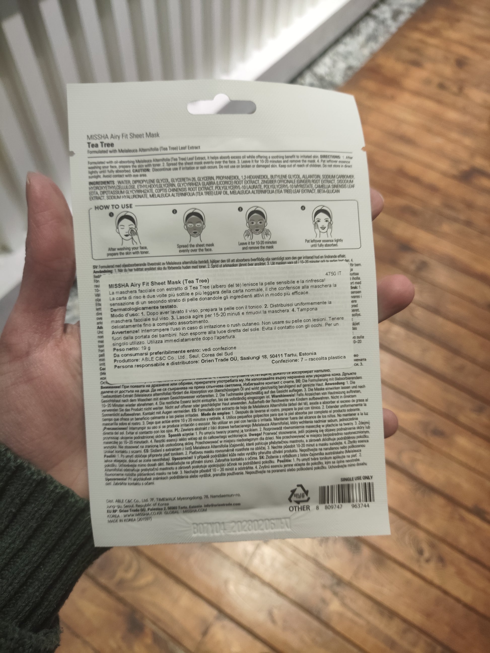 La maschera è realizzata in sottile carta di riso che garantisce un’ottima aderenza alla pelle mentre gli ingredienti di origine vegetale sono estratti a bassa temperatura per aumentarne la purezza e l’efficacia.