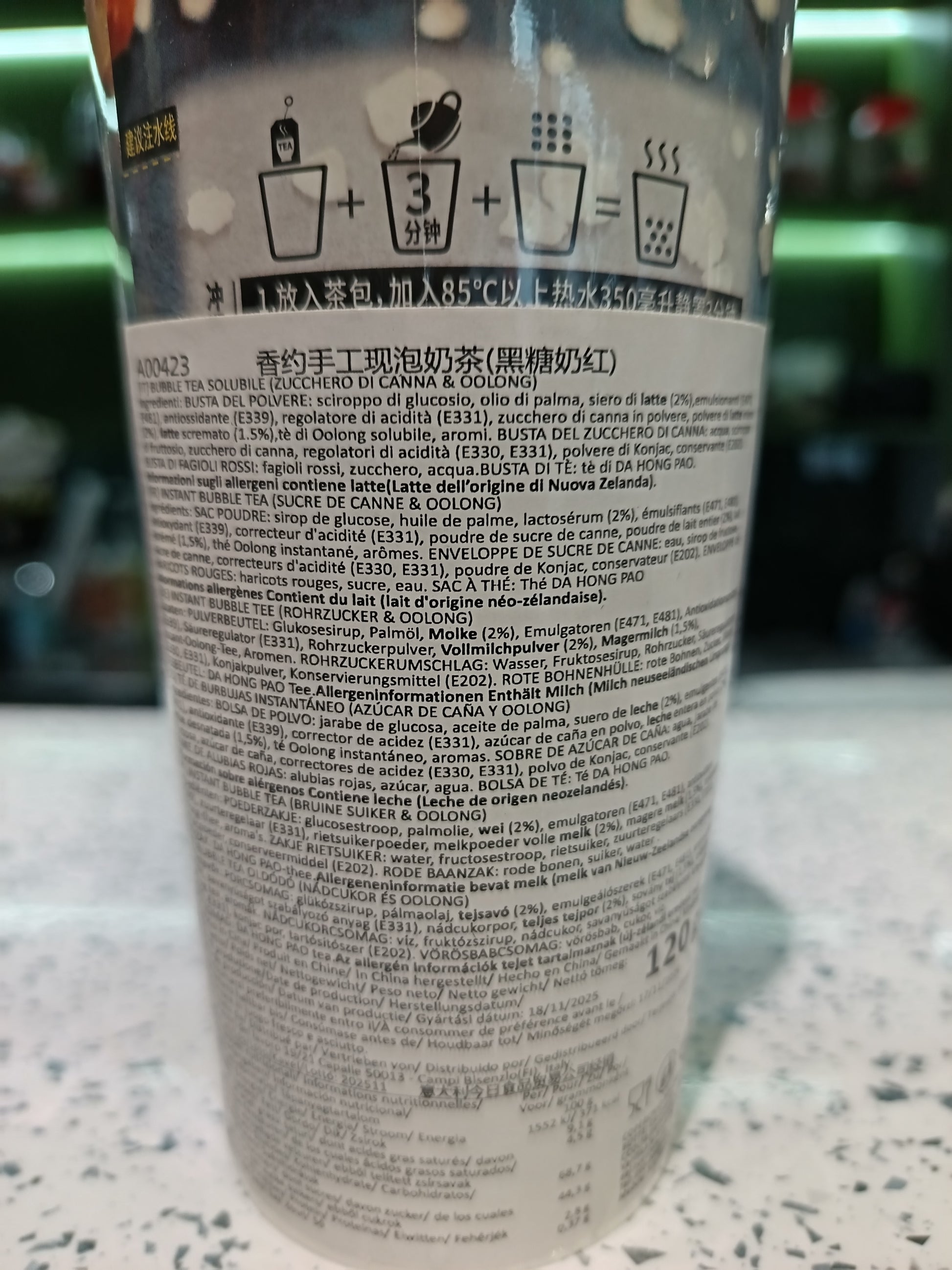 Una bevanda solubile dal gusto più profondo rispetto al classico milk tea: il tè oolong dona note tostate e aromatiche, mentre lo zucchero di canna aggiunge una dolcezza calda e caramellata. Perfetto per una pausa veloce in stile bubble tea… pronta in pochi secondi!