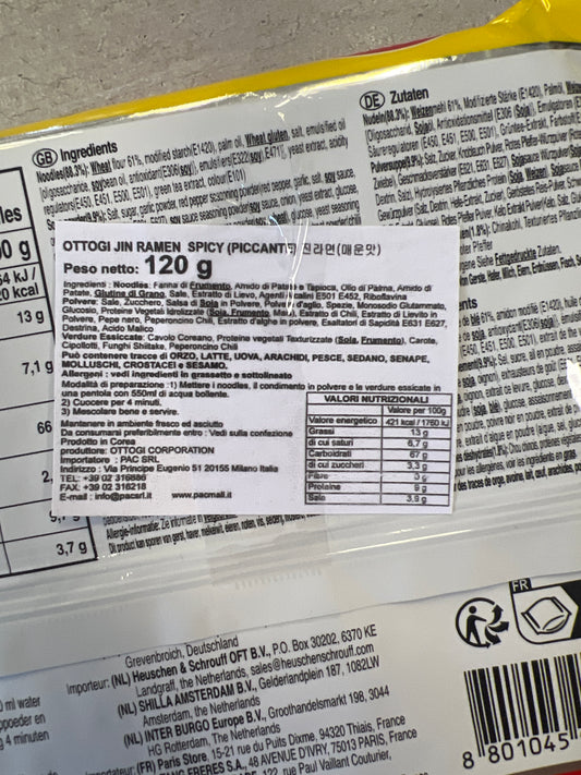 Ottogi - Jin Ramen Piccante alle Verdure 120g (CON BRODO)