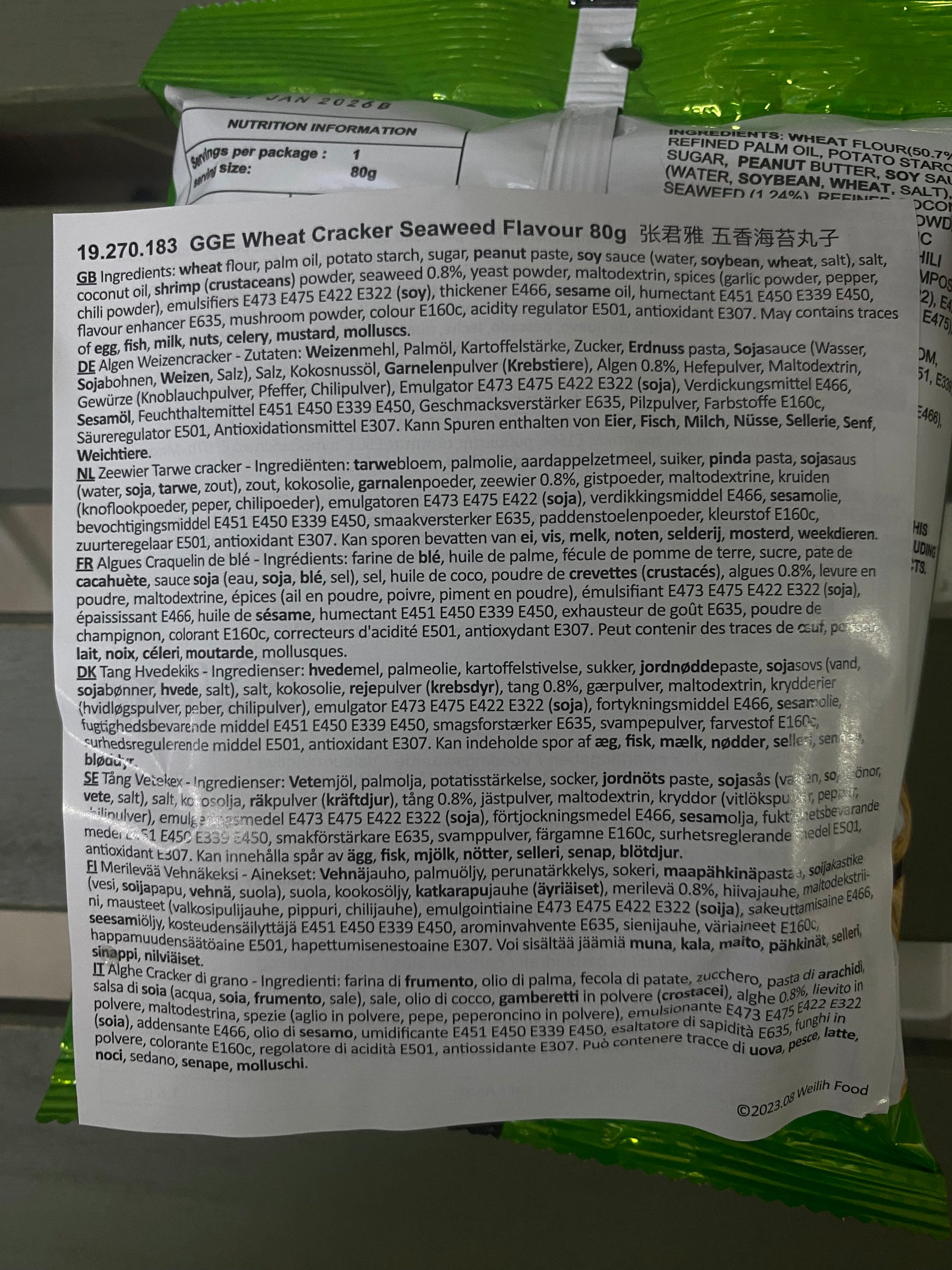 Croccante snack di ramen fritto al gusto alghe, perfetto per gli amanti dei sapori orientali autentici. La combinazione tra la croccantezza del ramen e l’aroma delicato delle alghe nori rende questo snack irresistibile e unico.