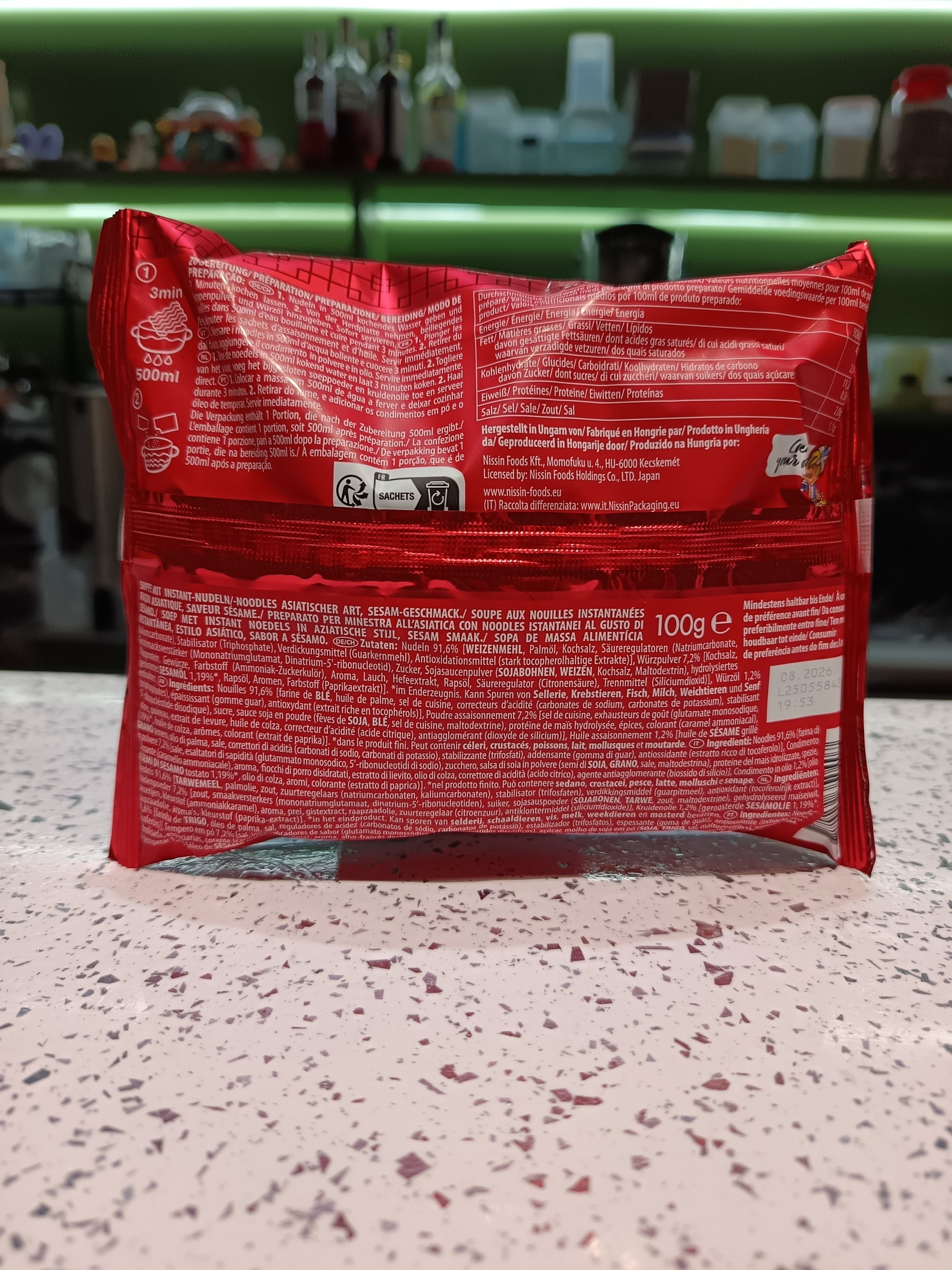 La variante al sesamo è perfetta per chi ama un brodo aromatico, ricco ma delicato, con un profumo tostato irresistibile. Le tagliatelle istantanee Nissin assorbono alla perfezione il sapore della zuppa, creando un piatto confortante e gustoso in pochi minuti.